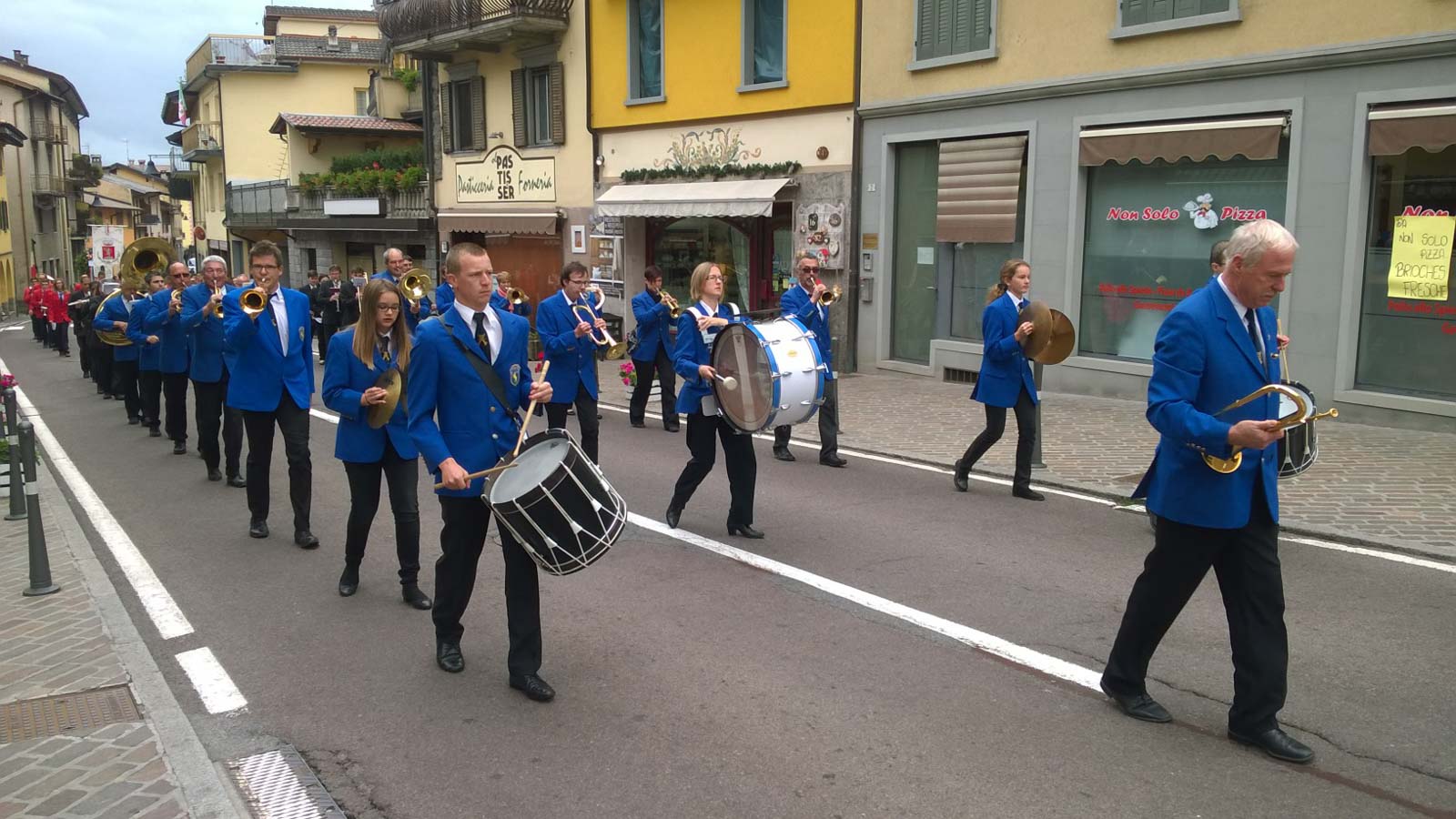 Per l’occasione a Castione della Presolana hanno soggiornato negli ultimi tre giorni circa 250 amici francesi. Questa mattina la Santa Messa nella chiesa parrocchiale (con la presenza anche del sacerdote francese), il corteo per le vie del paese accompagnato da ben tre corpi musicali cittadini (oltre alla banda locale l’esibizione di altre due provenienti dalla città francese), la deposizione della corona al monumento dei caduti, le esibizioni delle bande davanti al centro sportivo comunale (dedicato proprio a Bons-en-Chablais) e dentro il palazzetto i discorsi di rito e lo scambio dei doni.
