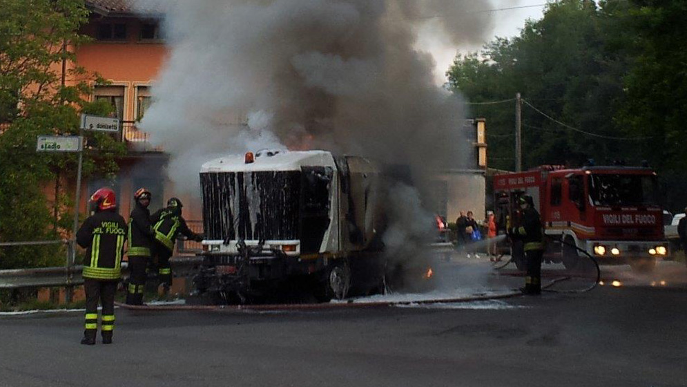 Una spazzatrice è andata distrutta a causa di un incendio, nella mattinata di oggi a Leffe. L’episodio si è verificato poco dopo le 8, nella zona dello stadio. Il mezzo, della ditta che si occupa della pulizia strade per il comune, era all’opera quando improvvisamente ha preso fuoco. Non è chiaro quale sia stata la causa del rogo, ma si suppone si sia trattato di un guasto: dell’olio idraulico potrebbe essere fuoriuscito, innescando l’incendio. Appena si è accorto di quanto stava accadendo, l’operatore alla guida del mezzo è sceso e ha dato l’allarme. Sul posto sono intervenute tre squadre dei Vigili del fuoco, due da Gazzaniga e una da Clusone, che hanno provveduto a spegnere le fiamme. L’intervento si è concluso intorno alle 10,30.