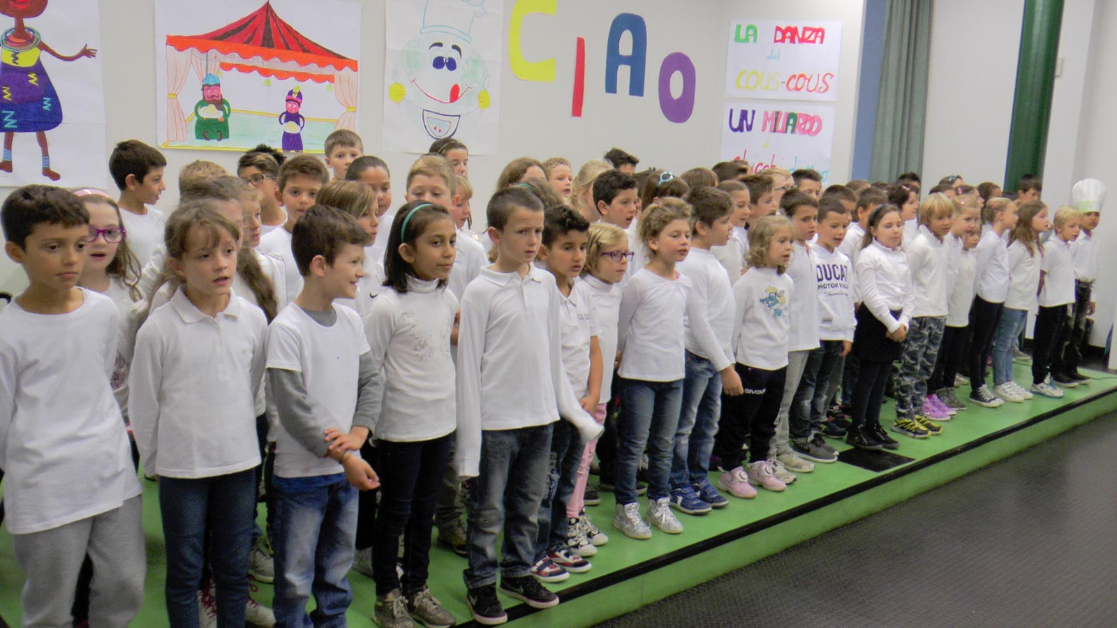 «La buona notizia è che quest’anno ci sono cinque famiglie nuove – sottolinea Domenico Giudici, dell’associazione «Aiutiamoli a vivere» di Clusone –. I bambini hanno tutti un’età tra gli 8 e 9 anni e provengono dalla zona di Vitebsk, all’estremo nord della Bielorussia. Nove di loro vengono per la prima volta in Italia». Timidi e spaesati, sono stati accolti con una piccola festa preparata dagli alunni delle terze con le loro insegnanti. Un momento tutto all’insegna del cibo, in omaggio ad Expo 2015. Sono stati proposti canti dal mondo, a ogni bambino bielorusso è stato donato un cappello da cuoco e offerto un pezzo di pane.