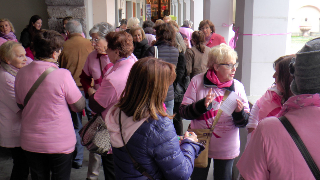 Una t-shirt rosa per testimoniare la propria vicinanza alle donne che soffrono di tumore al seno, ma sopratutto per ricordare a tutte che la prevenzione è importante. L’indumento è stato indossato dalle donne che oggi pomeriggio a Clusone hanno preso parte alla camminata “Tutte in rosa”, iniziativa promossa dalla Delegazione dell’Alta Valle Seriana della Lilt (Lega Italiana per la
