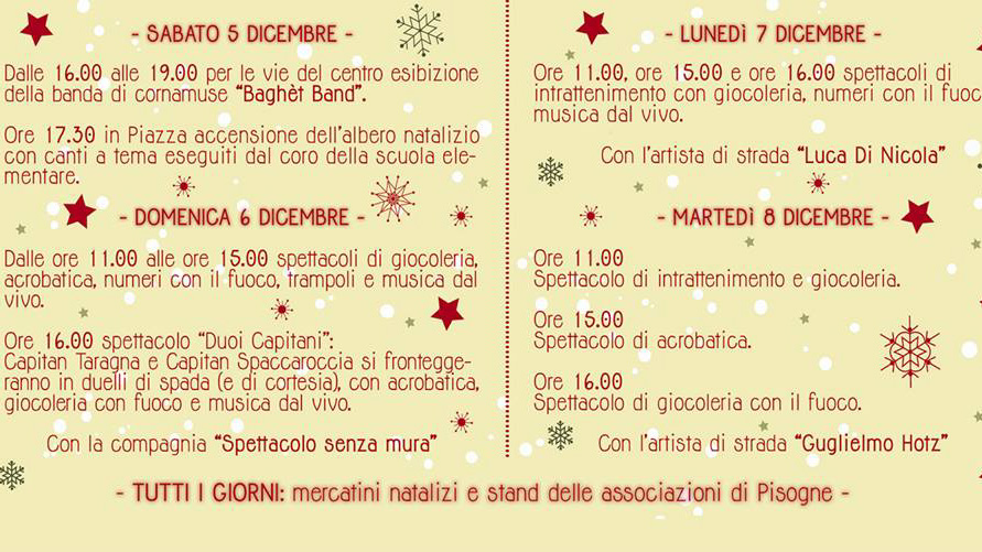 Qui sotto il programma degli eventi per il mese di dicembre.