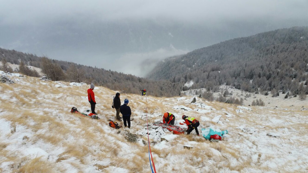 L’eliambulanza non poteva decollare, a causa delle condizioni meteo e per la scarsa visibilità, sia presso le basi, sia in quota. Sono quindi entrate in azione le squadre territoriali delle Stazioni di Temù, Edolo e Ponte di Legno. I soccorritori hanno raggiunto a piedi i due alpinisti: li hanno calati e recuperati con barella portantina. L’intervento si è svolto in buona parte dopo il tramonto, con condizioni di visibilità ridotta dal buio, e con una nevicata in corso.