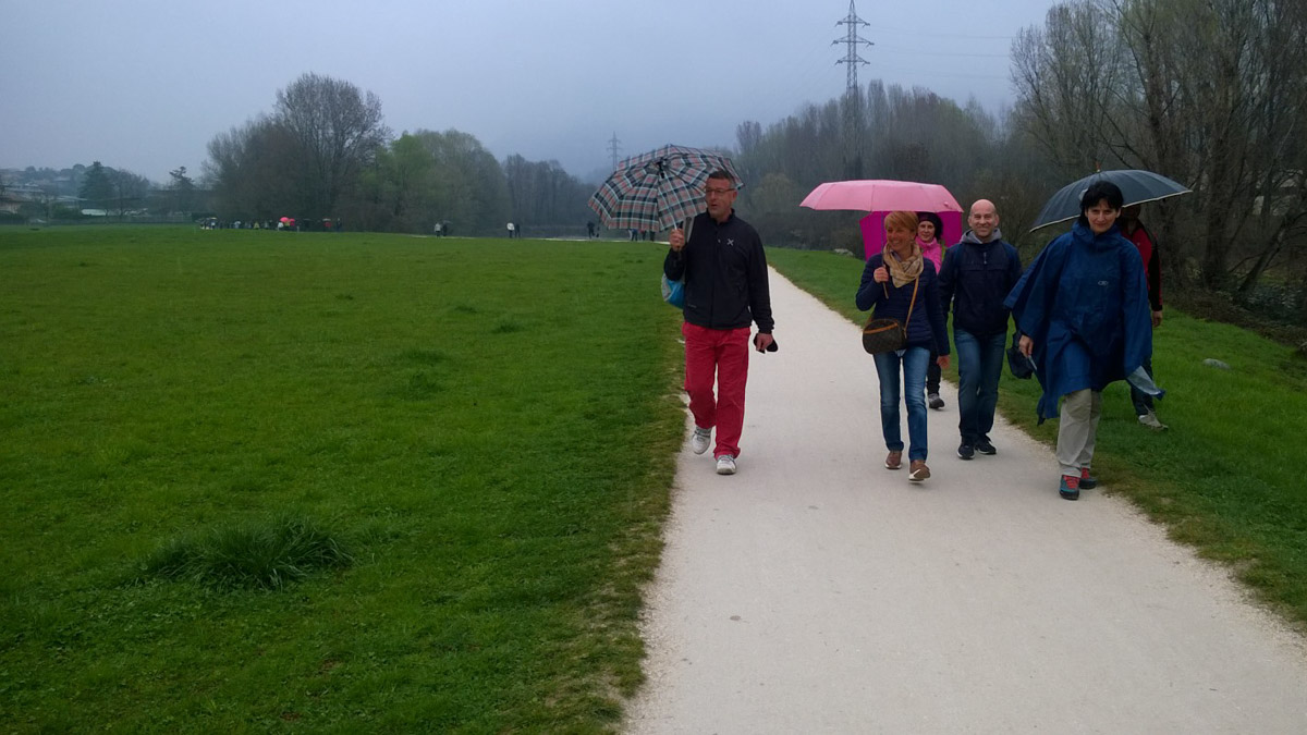 Questa mattina abbiamo raggiunto il gruppo ad Albino, lungo la ciclabile, non lontano dalla stazione della Teb. «Siamo in cammino verso la Cattedrale di Bergamo – spiega don Mauro Bassanelli, parroco di Fino del Monte e guida del Vicariato Clusone-Ponte Nossa – che per noi è la nostra chiesa madre. Siamo in cammino in questo anno della misericordia, in cammino perché desideriamo passare attraverso la Porta Santa come segno e per volere essere abitati dalla tenerezza e misericordia del Signore».
