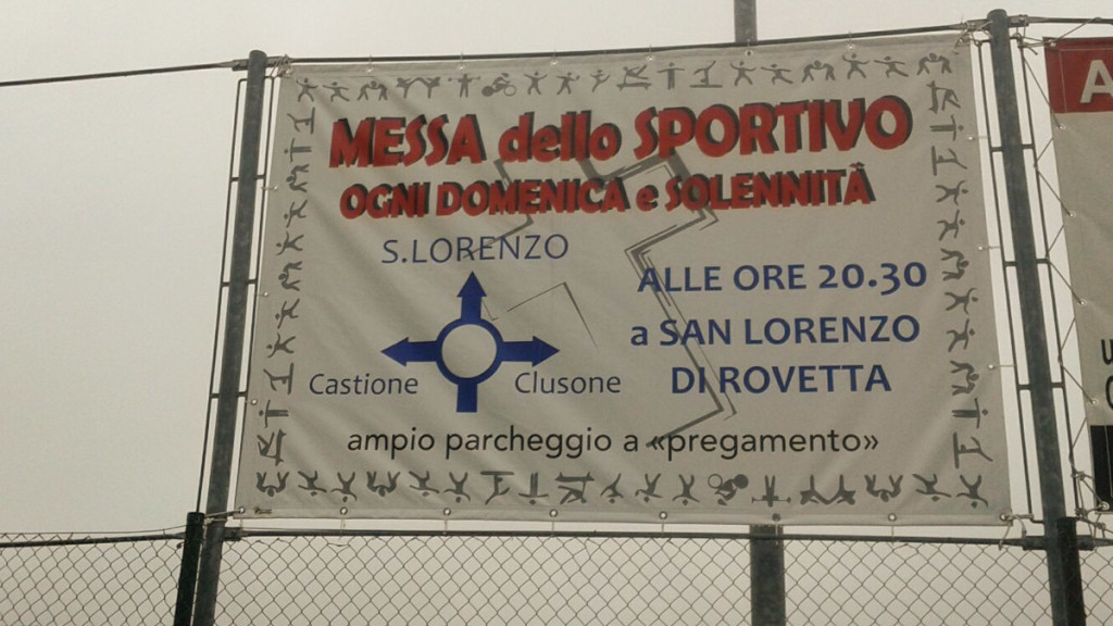 Per meglio intercettare gli sportivi don Guido ricorda l’appuntamento con la mensa del Signore pure con gli striscioni affissi presso le principali aree affollate dagli amanti dello sport, in particolare impianti di sci e campi da calcio. Tra gli sponsor delle discipline ecco allora in bella vista la scritta “Messa dello sportivo, ogni domenica e solennità, alle ore 20,30 a San Lorenzo di Rovetta. Ampio parcheggio a pregamento”. Impossibile non passare inosservato, anche solo per l’approccio. Altro che aperitivo dopo una giornata in compagnia, l’appuntamento è quello con la Santa Messa.