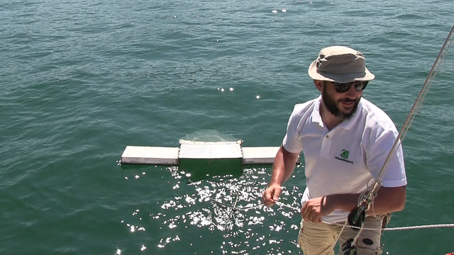 Dopo i rilievi microbiologici nei punti sensibili del lago, mentre i campioni sono sottoposti ad analisi nel laboratorio mobile posizionato a Castro, nella giornata odierna i biologi dell’equipaggio hanno condotto un lavoro di campionamento di microplastiche presenti nelle acque lacustri. È la prima volta in Italia che vengono monitorati questi rifiuti nei laghi, secondo un protocollo scientifico fino ad oggi impiegato solo nei mari. Grazie all’utilizzo di una manta a strascico, strumento messo a disposizione dall’Università Ca’ Foscari di Venezia, trainato da una barca a vela, è possibile filtrare l’acqua del lago e prelevare microlitter in superficie, per poi procedere alle analisi dei detriti.