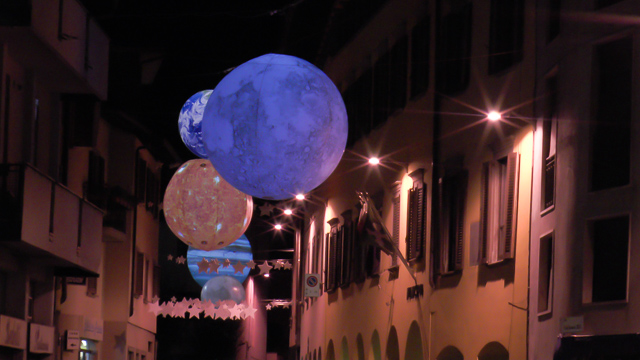A grande richiesta, dopo il successo dell’edizione 2015, è tornato anche il video mapping, le immagini in movimento proiettate sulla facciata della chiesa parrocchiale. Il tema è sempre lo spazio e l’effetto davvero suggestivo, come si può vedere dal nostro video. Ma, bisogna ammetterlo, dal vivo è tutta un’altra cosa.