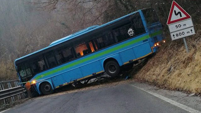 Un autobus della Sab, per cause ancora in corso di accertamento (non si esclude, per ora, un problema tecnico) è finito fuori strada terminando la sua corsa sulla carreggiata sottostante. Un automobilista in transito si è fermato per prestare i primi soccorsi. Fortunatamente non sono rimasti coinvolti altri veicoli e l’autobus era vuoto. La strada è rimasta chiusa per via del mezzo di traverso. Sul posto 118 e le forze dell’ordine. (Seguono aggiornamenti)