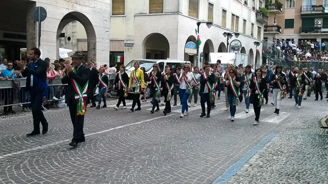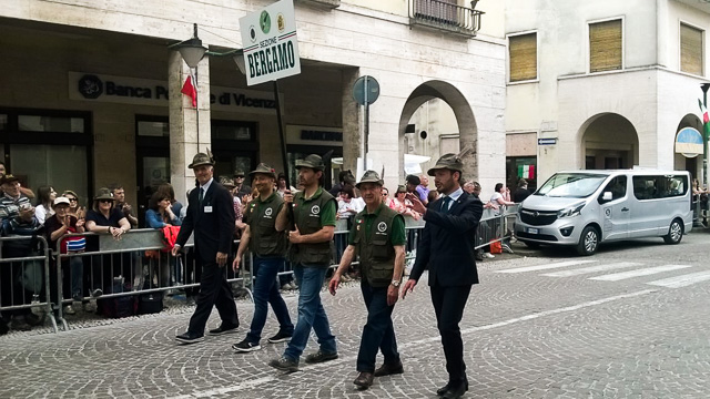 Oggi era il giorno della grande sfilata con tutte le sezioni dell’Ana. Si calcola siano stati 90 mila gli alpini che hanno partecipato. Migliaia le penne nere orobiche, contraddistinte dallo striscione “Berghèm de sass”. Con loro anche molti sindaci dei nostri paesi.