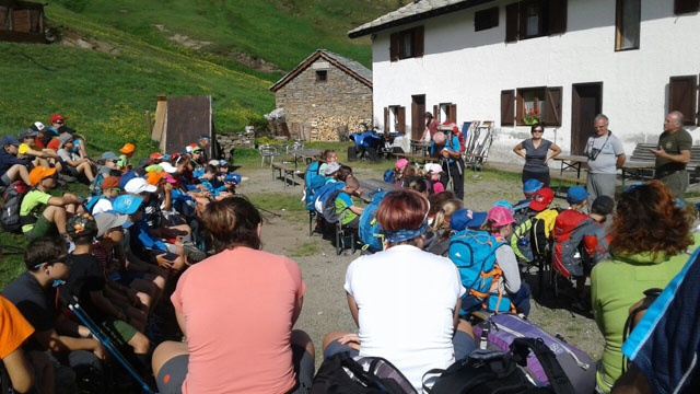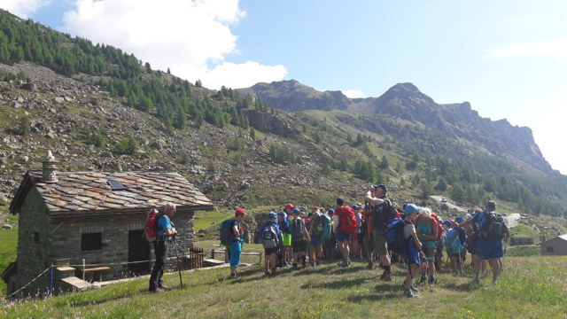 «Ieri il viaggio – spiega l’accompagnatore Gianni Facchini – è iniziato con un temporale (vedi questo articolo). Al nostro arrivo fortunatamente abbiamo trovato il sole e abbiamo potuto godere della visita al forte Bard, un regalo che Montagna Ragazzi ha voluto fare ai partecipanti. Dopo circa 3 ore di cammino siamo arrivati al rifugio Dondena dove abbiamo cenato. Questa mattina abbiamo incontrato il direttore del parco in cui si trova la zona del rifugio. Così abbiamo appreso diverse informazioni sulle caratteristiche morfologiche del territorio e di flora e fauna. Abbiamo visto anche un gruppo di camosci».