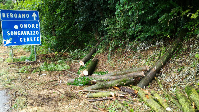 Ma sono cadute piante anche in alta Val Seriana. Ad Ardesio, dopo il ponte delle Seghe andando verso Gromo, un albero ha interrotto la circolazione sulla provinciale (di tutti gli interventi ad Ardesio diamo conto qui). Un’altra pianta è finita sulla strada lungo la provinciale per Castione, all’altezza del bivio per Onore e Songavazzo.