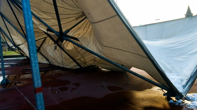 Il tendone delle feste dell’oratorio non ha infatti retto al peso della neve e dell’acqua ed è praticamente imploso. La struttura metallica di sostegno si è piegata e il tendone è finito a terra. Il fatto è avvenuto nella notte tra domenica e lunedì.