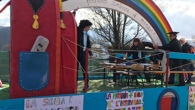 Quattro i carri che hanno lasciato il piazzale in via Don Bepo Vavassori. I ragazzi della scuola primaria hanno ricreato alcuni momenti che caratterizzano la vita in classe: da una sana merenda a base di pane e formaggio a divertenti lezioni. L’oratorio di Clusone ha scommesso sulla simpatia del “Madagascar Circus”; un terzo carro, realizzato dal gruppo degli adolescenti dell’oratorio, è rimasto in tema con i “Pinguinos de Madagascar Chiquitos”. Il quarto carro, proveniente da Oltre il Colle, ha invece voluto ricordare la tragedia dei migranti (con anche una frecciata alle speculazioni).