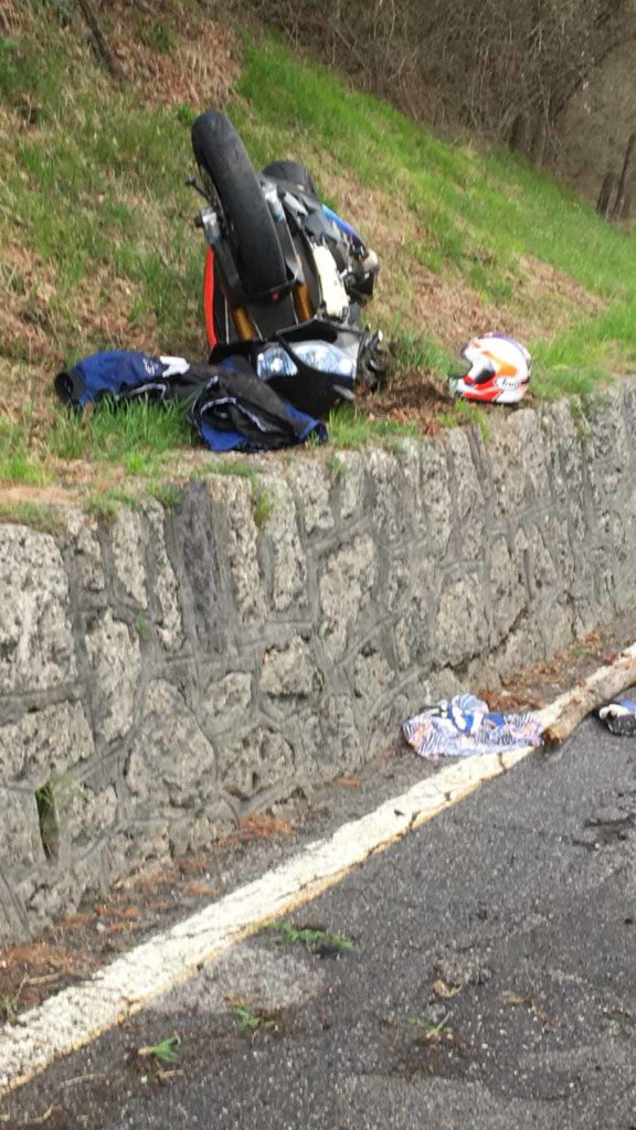 Secondo una prima ricostruzione l’uomo avrebbe fatto tutto da solo finendo contro un muretto. Nell’impatto la moto è stata catapultata sopra il muro a margine della carreggiata.