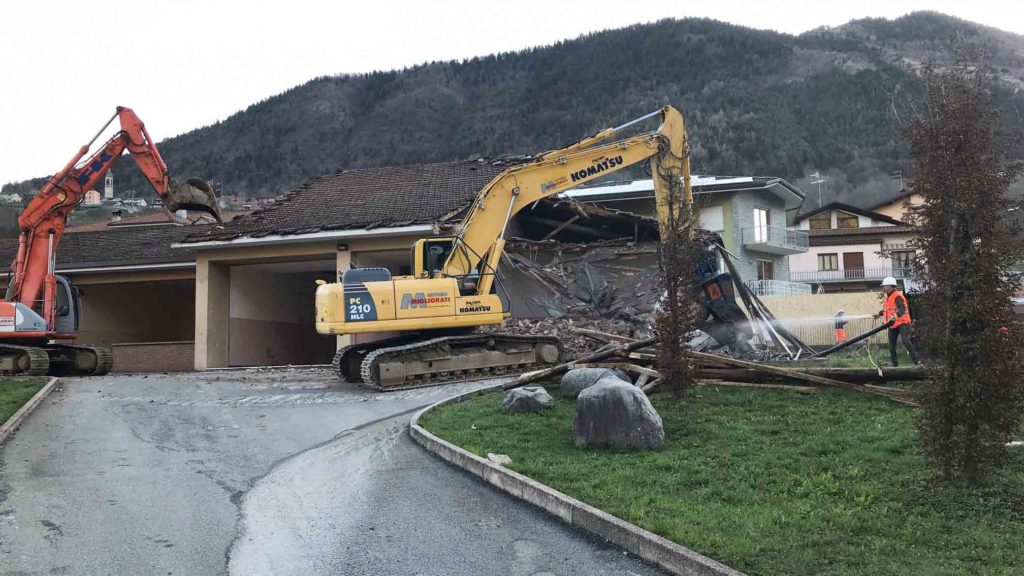 Iniziate questa mattina presto a Cerete Basso le operazioni di abbattimento della scuola primaria.