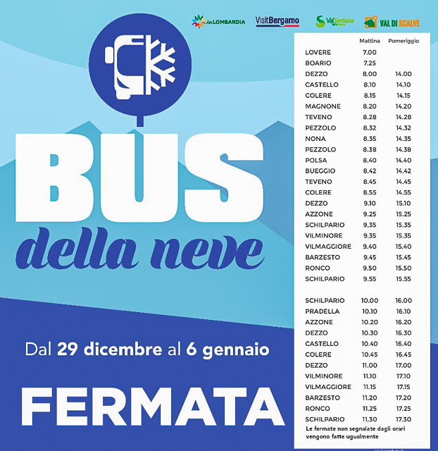 Piste da sci più vicine grazie al “Bus della Neve”. Confermato anche per questa stagione invernale il servizio di trasporto che collega Lovere alla Valle di Scalve.