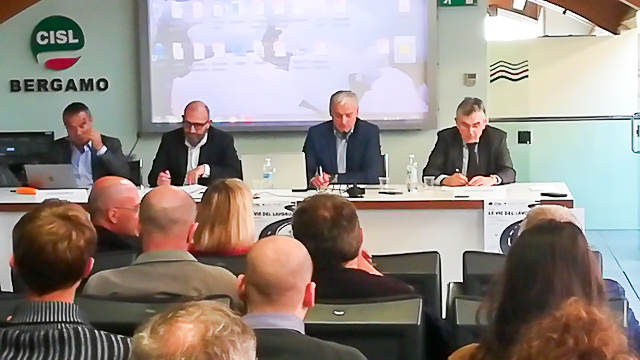 Antonio Scaini, segretario generale Fit Cisl, ha portato i punto di vista della categoria dei trasporti. «Dalle infrastrutture si riparte per ridare slancio occupazionale e economico al paese. Noi siamo preoccupati e arrabbiati per il balletto delle cifre riguardante le risorse da destinare al trasporto pubblico locale: ci sono a rischio posti di lavoro; è a rischio il servizio stesso con ricadute sui cittadini; sono a rischio tutti i progetti e programmi della mobilità sostenibile. La Fit di Bergamo ritiene che il trasporto pubblico debba essere considerato allo stesso livello di servizi indispensabili, come la sanità, l’istruzione e l’approvvigionamento dell’acqua potabile. C’è bisogno – ha concluso – di risorse per le opere infrastrutturali, oltre che di risorse per la sicurezza; c’è bisogno di risorse per il rinnovo dei contratti nazionali, unici strumenti che possono garantire salario, tutele e diritti».