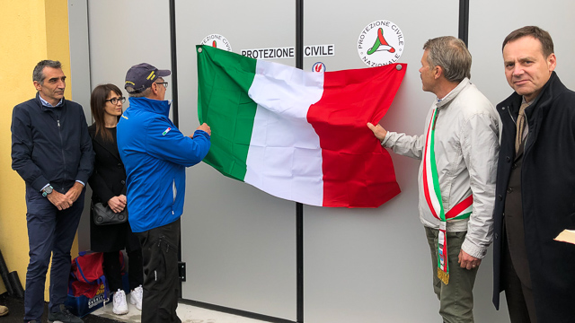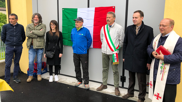 Oltre ai volontari di Protezione civile e al sindaco, oggi all’inaugurazione c’erano anche alcuni esponenti dell’amministrazione comunale uscente e il parroco di Vertova don Giovanni Bosio che ha impartito la benedizione.