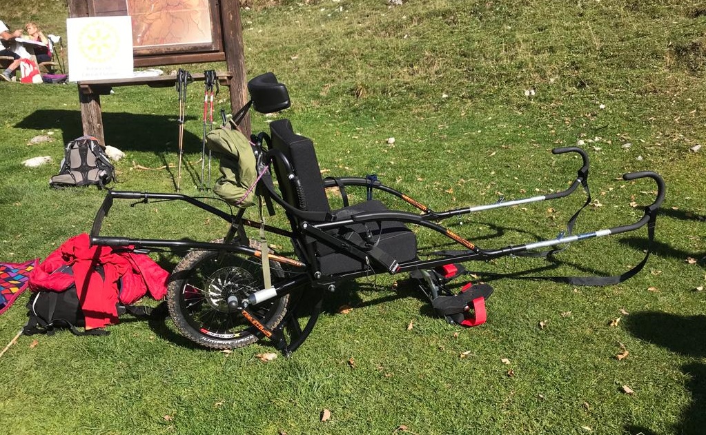 «Da un paio di mesi il Cai di Bergamo si è dotato di questa joelette – racconta Alex Benagli -. Serve a trasportare persone con disabilità sui sentieri. Con questa siamo stati in diversi rifugi. Per utilizzarla è possibile effettuare una prenotazione sul sito del Cai di Bergamo. Si sta creando anche un gruppo di volontari per aiutare persone che non abbiano qualcuno per spingere questa “portantina da montagna“ sui sentieri. È un servizio gratuito».
