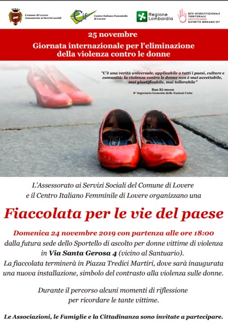 Domenica 24 novembre a Lovere l’appuntamento con la fiaccolata è in via Santa Gerosa 4 alle ore 18.