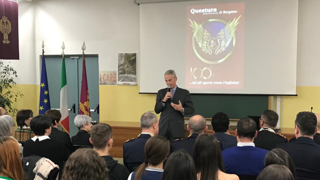 «Questo è l’impegno che abbiamo preso con le amministrazioni comunali – ha detto il Questore di Bergamo -, ai quali va il mio ringraziamento e il mio saluto, e in particolare con la Direzione Scolastica Provinciale al termine della mostra in Prefettura di Bergamo di potere vincere una scommessa: andare sul territorio e fare parlare i giovani dell’Istituzione Questura della Provincia di Bergamo e della Polizia di Stato nelle sue varie sfaccettature. Questa è la terza sede: siamo stati a San Paolo d’Argon, a Treviglio, a Clusone e dalla prossima settimana andremo in altri comuni».