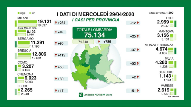– i casi positivi sono: 75.134 (+786)