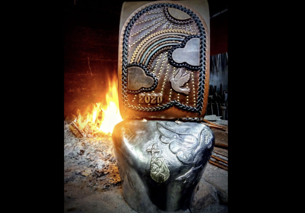 La pagina Facebook, oltre per gli allevatori, è un punto di incontro anche dei forgiatori di campanacci italiani e svizzeri. “Importanti maestri del settore stanno realizzando un grande campanaccio – spiegano -. L’idea nasce da Mauro Savin, mastro fabbrile della Valle d’Aosta, che ha realizzato un unicum, sintesi tra arte e suono, incastonando le lamiere dei fabbri di tutta la Penisola per giungere ad un’unica vibrazione armonica. Il collare in cuoio, intrecciato a laccetti colorati in stile valdostano, ideato dalla Selleria Le Cuir di Aosta, narra la speranza della rinascita”.