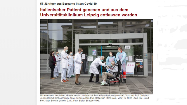 Perani è stato curato all’ospedale universitario di Lipsia, dove con l’aiuto dei medici e del personale sanitario ha vinto la sua battaglia. Ieri è uscito dall’ospedale, su una sedia a rotelle, fisicamente provato (e molto dimagrito), ma guarito. Anche i media tedeschi hanno dedicato spazio all’episodio. Come si legge sul sito d’informazione Leipziger Internet Zeitung, Perani è riuscito ad alzarsi in piedi per pochi istanti e ringraziare tutto lo staff sanitario per le cure ricevute. «Mi avete salvato la vita», ha detto.