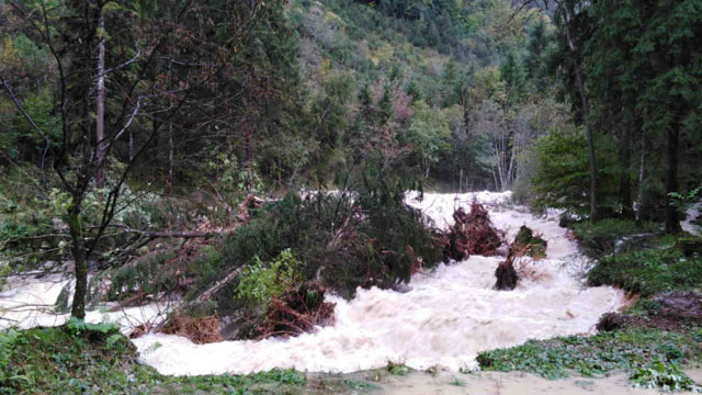 La strada consorziale del Branchino nel guado che incrocia il torrente Acqualina, all’altezza del rifugio Alpe Corte è stata interrotta da grossi massi, al momento è rimasto isolato un contadino all’alpeggio con circa 90 bovini, 50 capre, 6 pecore.