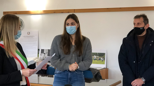 La cerimonia in municipio è stata contrassegnata anche da altri momenti. A cominciare dal premio Alice Dal Brollo, la studentessa del paese che nel 2009 perse la vita durante sotto le macerie del terremoto dell’Aquila, a cui lo scorso anno è stata dedicata la biblioteca. Un concorso dedicato ai ragazzi del paese capaci di distinguersi in ambito sociale, nello sport, culture e innovazione. «Un’iniziativa voluta e finanziata da Gino Epis, titolare di Essenza spa, e zio di Alice Dal Brollo», ha detto la sindaca. Il premio è andato a Elisa Cattaneo, 19 anni. «Oltre ad avere risultati eccellenti nello studio, è una nuotatrice e nel 2019 ha compiuto la traversata del lago d’Iseo (23 chilometri, da Sarnico e Pisogne, ndr): 5 ore e 27 minuti di nuoto in acque libere. Una grande impresa, segno di impegno e fatica, ma anche un obiettivo raggiunto», ha sottolineato la prima cittadina.
