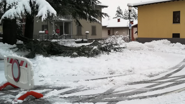 Diversi gli alberi e i rami che oggi hanno ceduto sotto il peso della neve. Una pianta è caduta anche sulla strada provinciale che attraversa la pineta e porta all’ospedale di Piario. Un altro episodio si è verificato nel pomeriggio a Clusone.