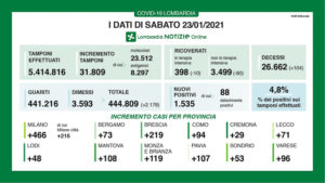Con queste premesse, il presidente Fontana ha confermato che la Lombardia non rinuncerà al ricorso al Tar. «Certamente – ha spiegato il governatore – salterà l’udienza di lunedì prossimo che era sulla sospensione dell’ordinanza del ministro Speranza del 16 gennaio che è già stata sospesa dallo stesso ministro oggi, ma andremo avanti perché la verità dei fatti sia acclarata anche a livello giudiziario. Per questo impugneremo anche il verbale della Cabina di regia, del Cts e l’Ordinanza di oggi del ministro Speranza nella parte in cui si dice che la Lombardia ha rettificato i dati».