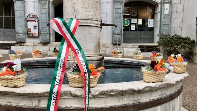 Sulla fontana di piazza Dante sono stati posati cesti di fiori in ricordo dei defunti del paese. Guarda il video: