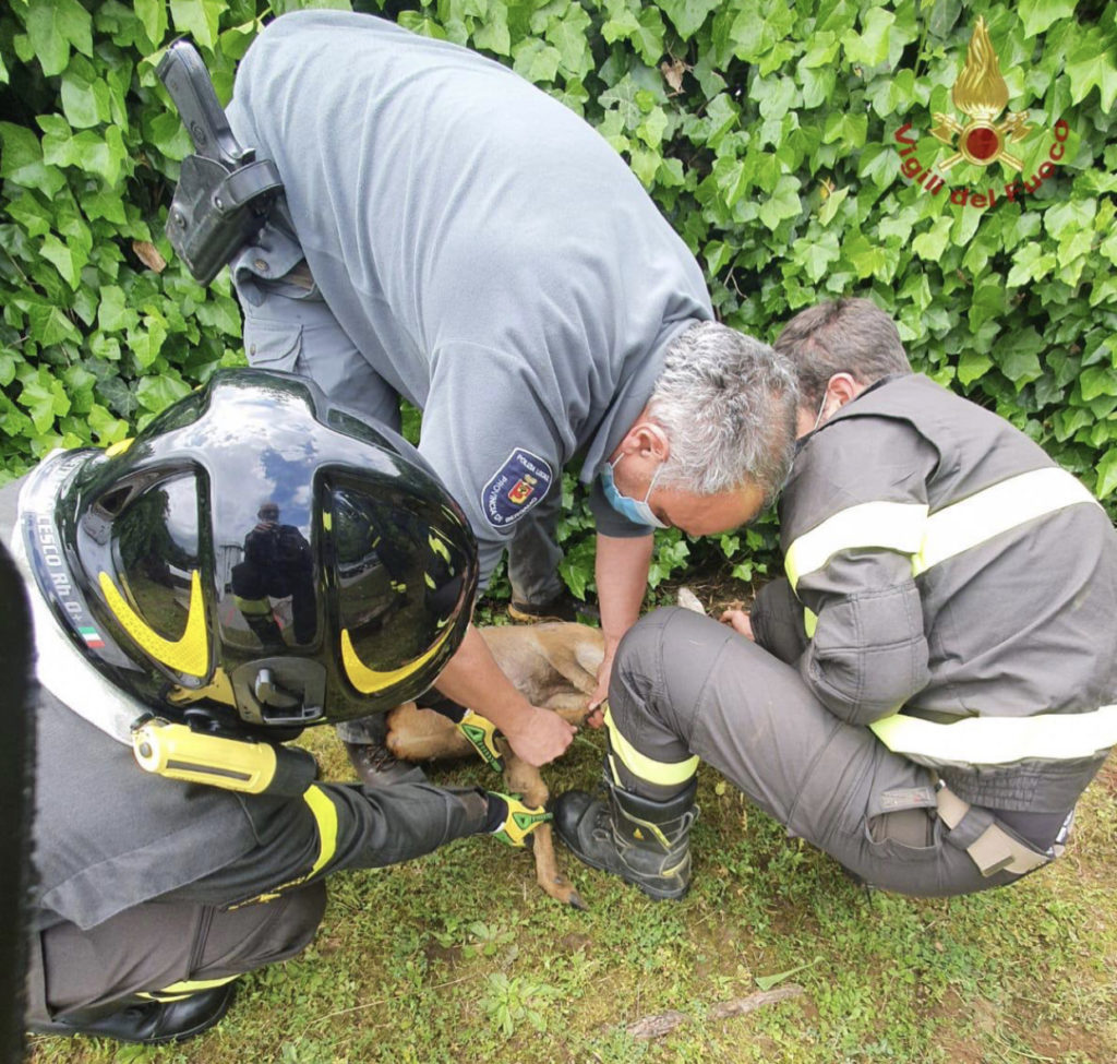 Presso il parcheggio di un negozio di via Provinciale, intorno alle 11.15, è stato recuperato un capriolo.