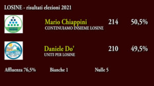 Candidato per la lista civica “Idee comuni”, Moraschini è stato votato da 1649 elettori, il 65,51%. Raffaella Richini, candidata per la lista civica Chiave di (s)volta”, si è fermata a 868 voti, parti al 34,49%. Schede nulle: 26 Schede bianche: 17. Su 4.338 aventi diritto, hanno votato in 2.560, un’affluenza del 59,01%.