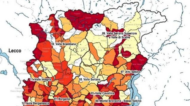 Di seguito la tabella con i dati relativi a tutti i comuni bergamaschi: