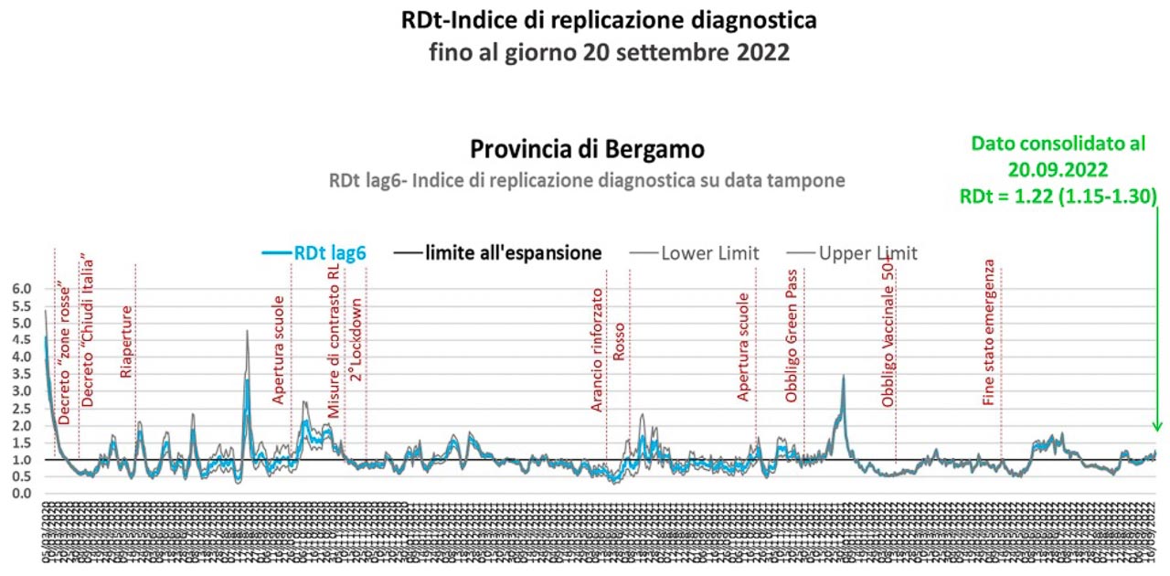 In lieve incremento il tasso di incidenza che, nella settimana 14-20 settembre 2022, è pari a 208 nuovi casi per 100.000 abitanti (ovvero 2,08 per 1.000, nella metrica utilizzata a livello di singoli comuni), contro i 172 della scorsa settimana. Lo scostamento rispetto alla precedente settimana è pari a +400 nuovi casi negli ultimi 7 giorni, ovvero +20,6% (la scorsa settimana presentava +103 nuovi casi, pari a +5,6% rispetto alla settimana precedente). Negli ultimi 7 giorni la media giornaliera dei casi incidenti è in lieve aumento ed è pari a 334 contro i 277 della scorsa settimana.