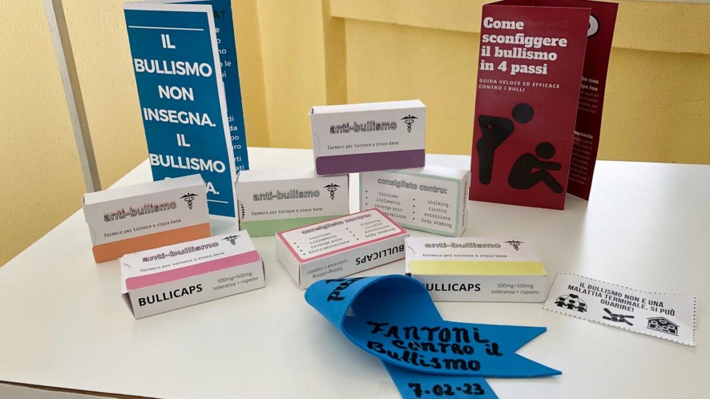Nell’ambito del concorso il premio per l’originalità è andato al gruppo che ha inventato le “Bullicaps”: Gioia Miot, Giulia Ferrari, Matilde Bosio, Claudia Mazzocchi, studentesse di seconda del Liceo Economico Sociale. «Abbiamo deciso di affrontare il tema del bullismo in maniera originale e creativa per arrivare alle persone in modo diretto e inedito – spiegano -. L’idea è stata di realizzare delle scatolette per rappresentare dei farmaci contro il bullismo in modo da aiutare le persone che ne soffrono a chiedere aiuto e a non restare chiuse in sé stesse. All’interno abbiamo voluto inserire anche un foglio illustrativo che spiega cos’è il bullismo, come difendersi (ad esempio, parlando con qualcuno) e come prevenirlo».