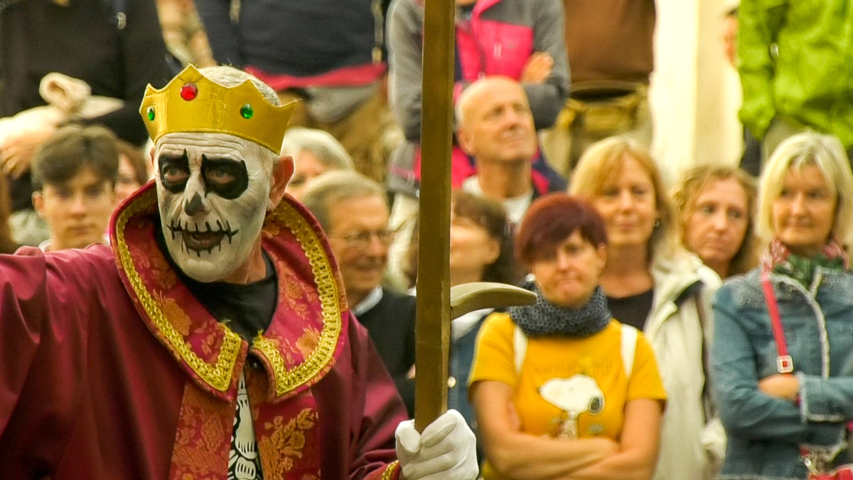La Danza macabra si è svegliata prima dell’alba, a Clusone. E ha cominciato a vagare – anzi, a ballare – per le vie della cittadina. La Festa del millennio ha riportato in vita i personaggi del ciclo della morte dipinto sulla facciata dell’Oratorio dei Disciplini. Con loro anche figure celebri, che hanno lasciato un segno sul passato clusonese e non solo.