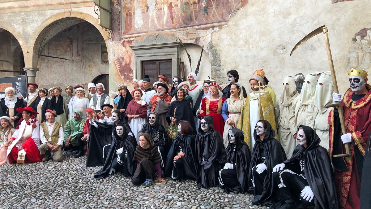 Nel ballo sono finiti contadini e soldati di ventura, usurai e fattucchiere, suore e cardinali, dongiovanni e meretrici. E poi anche personaggi che hanno dato prestigio a Clusone. Il pittore Antonio Cifrondi, di cui è allestita una mostra proprio in questo periodo al Museo arte tempo. L’architetto e scultore Cosimo Fanzago (nipote di Pietro, l’ingegnere e fonditore che realizzò il celebre orologio astronomico simbolo della cittadina), anche lui protagonista di una mostra al museo della Basilica. Il medico Bonomo de’ Bernardi, a cui è intitolata una via della cittadina. Persino Giacomo De Buschis “il Borlone”, pittore del Trionfo della Morte e della Danza Macabra.