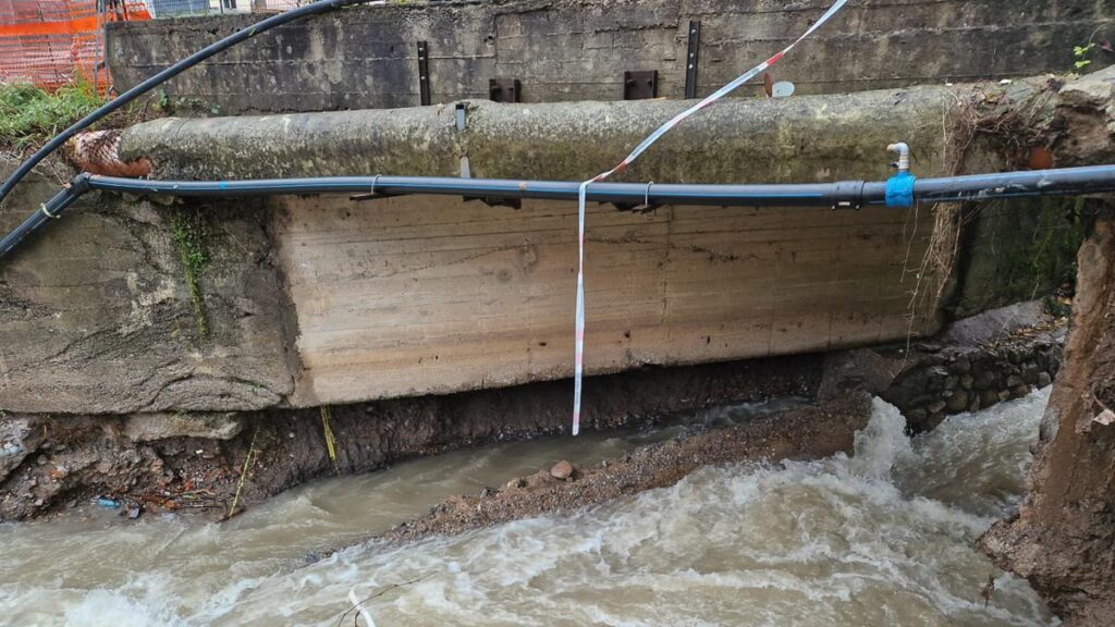 La piena del torrente, a causa delle forti piogge di questi giorni, ha eroso una delle pile del ponte generando rischi per la stabilità della struttura. Erano già in corso lavori di messa in sicurezza, programmati dall’Amministrazione comunale, grazie ai quali una parte del ponte era già stata sistemata. La piena ha intaccato la pila su cui ancora si doveva intervenire.