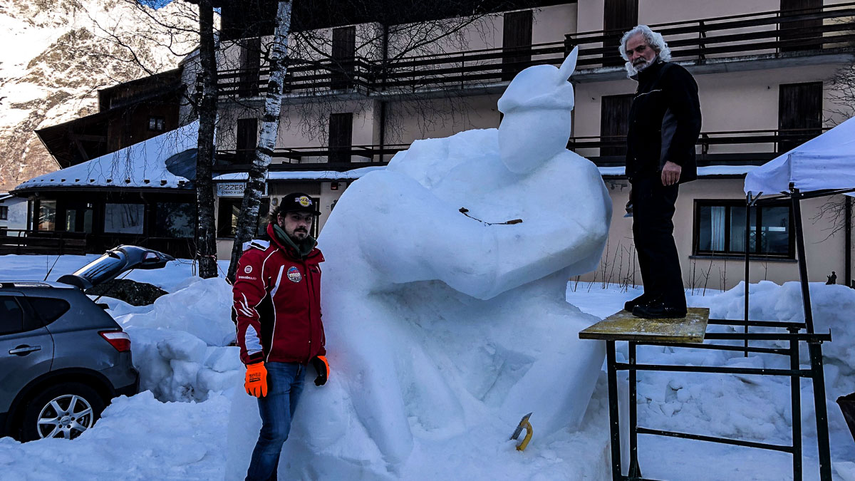 Quest’anno “Giass e Nef” è diventato “a föch” in omaggio agli spettacoli col fuoco che hanno caratterizzato la serata del sabato. Purtroppo, sulla prima giornata ha messo la firma il maltempo con la pioggia che ha reso complicato il lavoro degli scultori. Oggi, domenica, splendeva il sole e le quattro opere hanno potuto risaltare davanti ai tanti visitatori giunti a Valbondione.