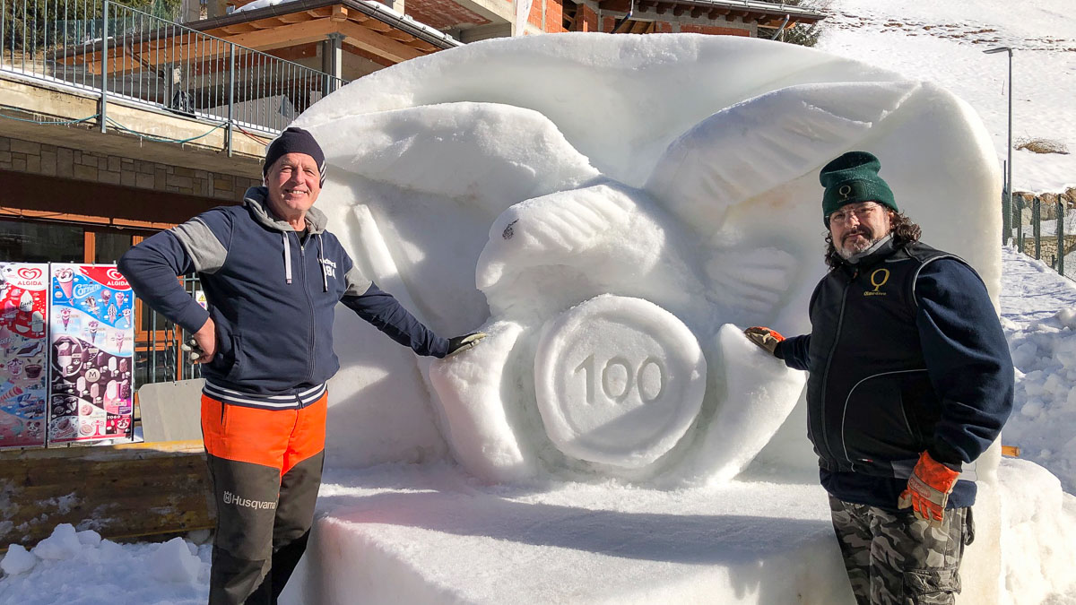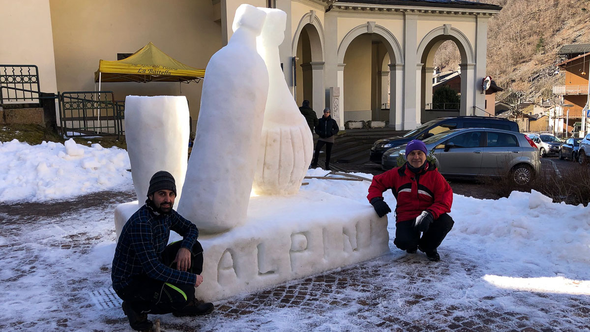 Nella neve hanno preso forma i simboli degli alpini, a Valbondione. L’edizione 2025 di “Giass e Nef” ha infatti celebrato i cent’anni delle Penne nere di Valbondione. Le quattro coppie di scultori che hanno partecipato al concorso si sono fatte ispirare, come da regolamento, dal tema “Evviva Evviva il corpo degli Alpin”. Una gara a colpi di creatività che ha premiato i “Lupi di Settala”, alias Manuel Gualandris e Stefano Rizzini, già vincitori nel 2019.