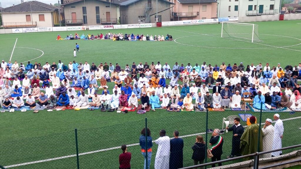 In occasione della “Festa del Sacrificio”, venerdì 6 giugno si sono tenuti incontri pubblici di preghiera organizzati dalla comunità islamica residente in Bergamasca. La Festa del Sacrificio (Eid al-Adha in arabo) è una delle due principali festività, dopo quella per la fine del Ramadan (Eid al-Fitr). Agli incontri organizzati a Curno e San Paolo d’Argon, si sono aggiunti quelli in Val Seriana a Nembro, Clusone e Gandino. In quest’ultimo caso la cerimonia si è tenuta al Campo Sportivo Comunale “Gandinese Stadium”, grazie al coordinamento organizzativo della Consulta multiculturale istituita presso il Comune di Gandino.