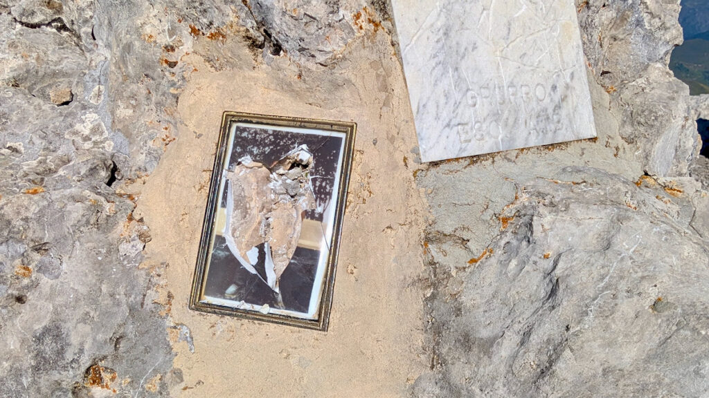 Purtroppo, però, c’è anche altro. «Notiamo che qualcuno, con un sasso, ha anche rotto una foto in ceramica cementata da tanti anni su un sasso a lato della croce. Inoltre, vediamo che il libro di vetta è stato rotto e buttato. Nel contenitore porta-libro è stato infilato un sasso in modo che non ci possa più stare niente. Sono state tagliate anche delle fascette che tenevano fissata alla croce una targa in ricordo di Elio, un escursionista morto in Adamello, e la targa è stata gettata chissà dove. È stata presa anche a sassate la campanella che, fortunatamente, si è solo allentata».