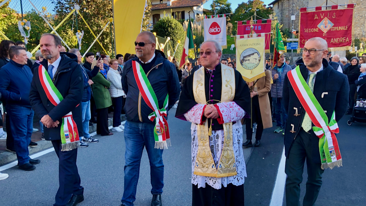 La comunità di Cazzano Sant’Andrea ha dato il benvenuto nel pomeriggio di domenica 26 ottobre al nuovo parroco, don Elio Mistri. Come da tradizione, l’accoglienza è avvenuta al ponte di via Papa Giovanni, dove il sacerdote è stato salutato dal sindaco Sergio Spampatti, dai rappresentanti delle associazioni locali con i loro vessilli, dai bambini e dalle famiglie della scuola materna parrocchiale, dai giovani dell’oratorio e da numerosi fedeli. Presenti anche il sindaco di Vertova, paese natale di don Elio, Riccardo Cagnoni, e quello di Torre de’ Roveri, Matteo Francesco Lebbolo, dove il sacerdote ha svolto il suo ministero per 27 anni.