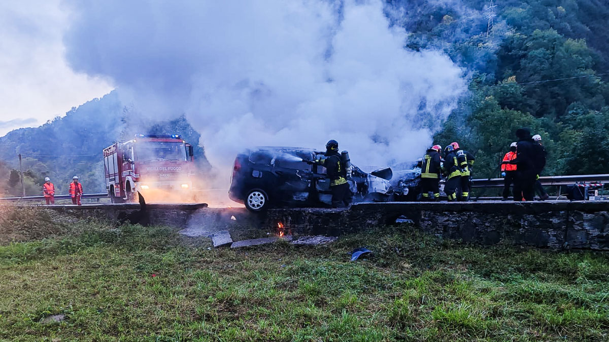 Oltre all’elicottero, per i soccorsi sono intervenute l’automedica, due ambulanze della Croce Verde di Colzate e della Croce Rossa di Alzano Lombardo. Sul posto anche i vigili del fuoco che hanno provveduto a spegnere le fiamme. I carabinieri della Compagnia di Clusone hanno effettuato i rilievi per ricostruire la dinamica del sinistro.