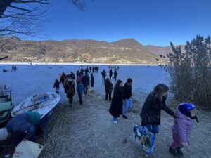 Il fenomeno è raro e molto suggestivo, quindi la raccomandazione e alla massima cautela. Soprattutto nel fine settimana, ma anche lunedì 12 gennaio, in tantissimi hanno scelto di pattinare o passeggiare sul lago di Endine e di Gaiano parzialmente ghiacciato, nonostante l’avviso di pericolo e di massima attenzione diramato dalle amministrazioni comunali rivierasche. C’è stato addirittura chi ha trasformato la superficie ricoperta dal ghiaccio in una pista di atterraggio per i parapendii. Si vedono intere famiglie e gruppi di persone, di tutte le età, che trascorrono qualche momento sul lago d’Endine ghiacciato. Un fenomeno che ha iniziato a manifestarsi intorno all’Epifania e che non durerà a lungo.