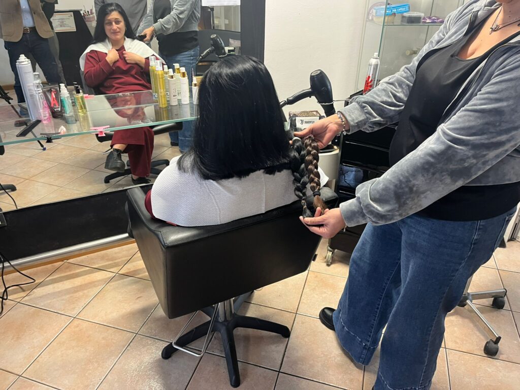 Quindi, subito dopo il colpo di forbici si passa allo shampoo, al perfezionamento del taglio e alla piega. Una ventina di centimetri dei propri capelli, un po’ del proprio tempo, la disponibilità di Stefania Cafarchia a sostenere così questa campagna che, assicura, se continuerà ad avere seguita potrà andare in aiuto anche di altre persone, non solo agli ustionati di Crans Montana. Per esempio malati oncologici o pazienti che vorrebbero poter disporre di una parrucca.
