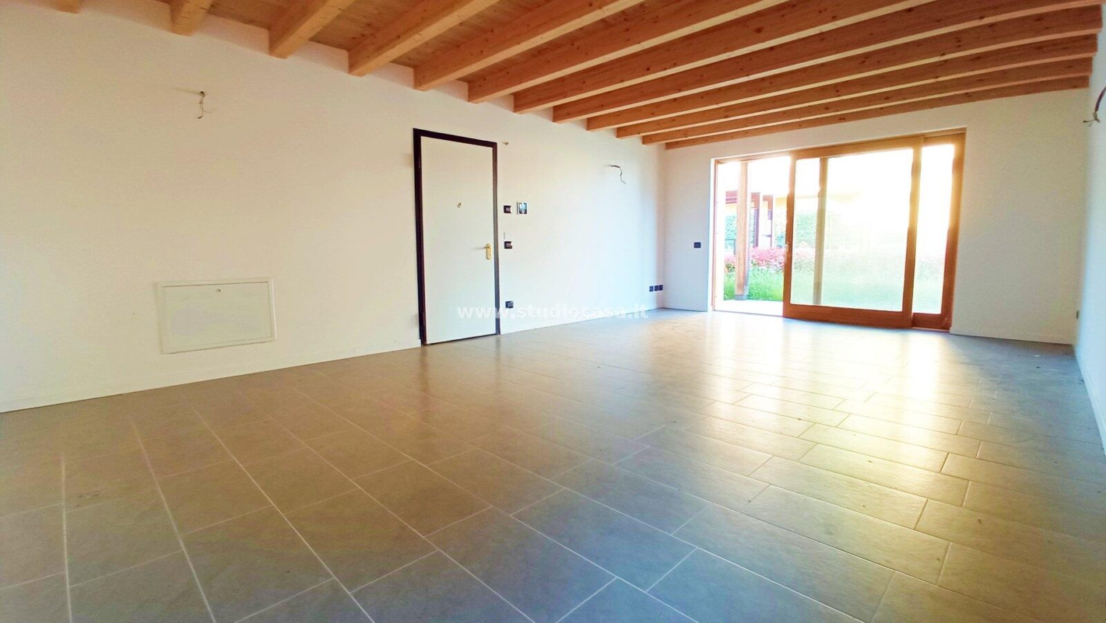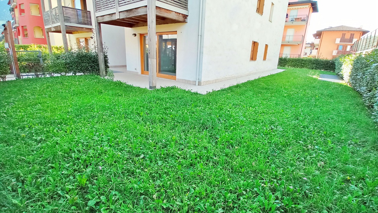 A Clusone vendesi grande appartamento di testa libero su 3 lati con grande giardino privato che lo circonda, porticato, grande sala con cucina a vista che può diventare separata abitabile, disimpegno, 2 bagni, 2 camere letto grandi, comoda cantina. Altissimo risparmio energetico con geotermia, riscaldamento a pavimento, triplo vetro, pannelli fotovoltaici. € 259.000. Classe A.