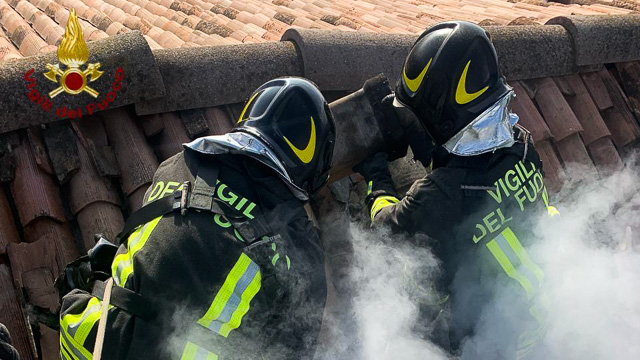 Tetto in fiamme, vigili del fuoco a Fiorano